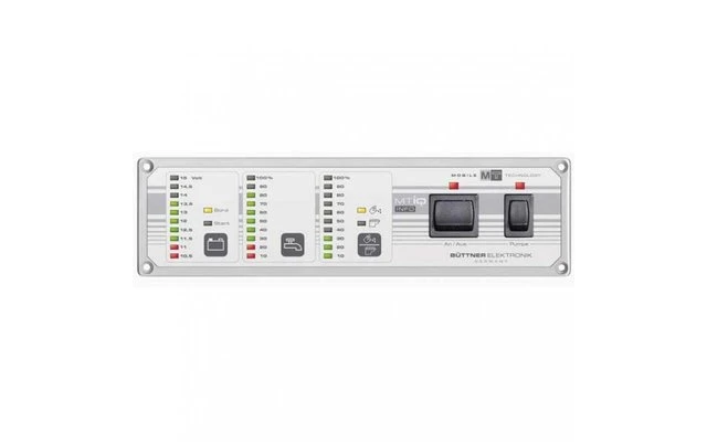 Zeigt Start-/Bordspannung sowie Füllstand von Frisch-/ Abwasser-/ Fäkaltank an. Hauptschalter (16 A) und Pumpenschalter (10 A) integriert (Tankgeber bitte separat bestellen).