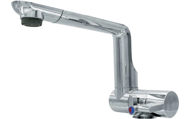 Der Einhebelmischer ARONA ist eine moderne Kunststoffarmatur. Die hohe Funktionalität unterstreicht der schwenkbare Auslauf, die gut zu reinigende Oberfläche sowie der ausschraubbare Wasserauslass mit standardmäßig mitgeliefertem Reinigungsschlüssel zum Entkalken und Reinigen. Wassermenge und Temperatur sind getrennt einstellbar. Die Armatur ist druckwasserbeständig bis 1,5 bar. Der Mikroschalter (max. 3 A) ermöglicht den Einsatz in Caravan und Reisemobil.