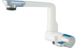 Der Einhebelmischer ARONA ist eine moderne Kunststoffarmatur. Die hohe Funktionalität unterstreicht der schwenkbare Auslauf, die gut zu reinigende Oberfläche sowie der ausschraubbare Wasserauslass mit standardmäßig mitgeliefertem Reinigungsschlüssel zum Entkalken und Reinigen. Wassermenge und Temperatur sind getrennt einstellbar. Die Armatur ist druckwasserbeständig bis 1,5 bar. Der Mikroschalter (max. 3 A) ermöglicht den Einsatz in Caravan und Reisemobil.