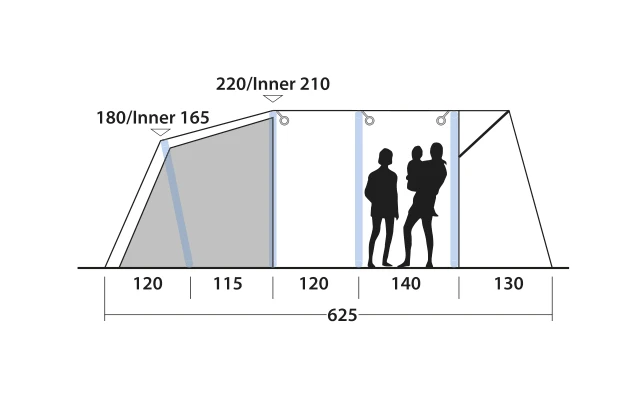 - Die vorgebogenen Luftschläuche sorgen für eine großzügige Deckenhöhe und einen geräumigen Innenraum